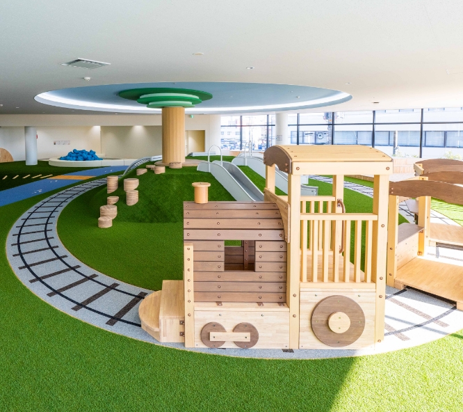 さらに、「3歳未満児用遊育空間 すくすくランド」は、「公園には安心して過ごせる場所がない」という保護者の意見をもとに誕生。3歳未満児の特性や身体モジュールに合わせた施設や、動物やボールの侵入を防ぎ、見守る保護者の負担を軽減するフェンスで囲まれた空間など、安全性と利便性を両立させた空間を提供しています。