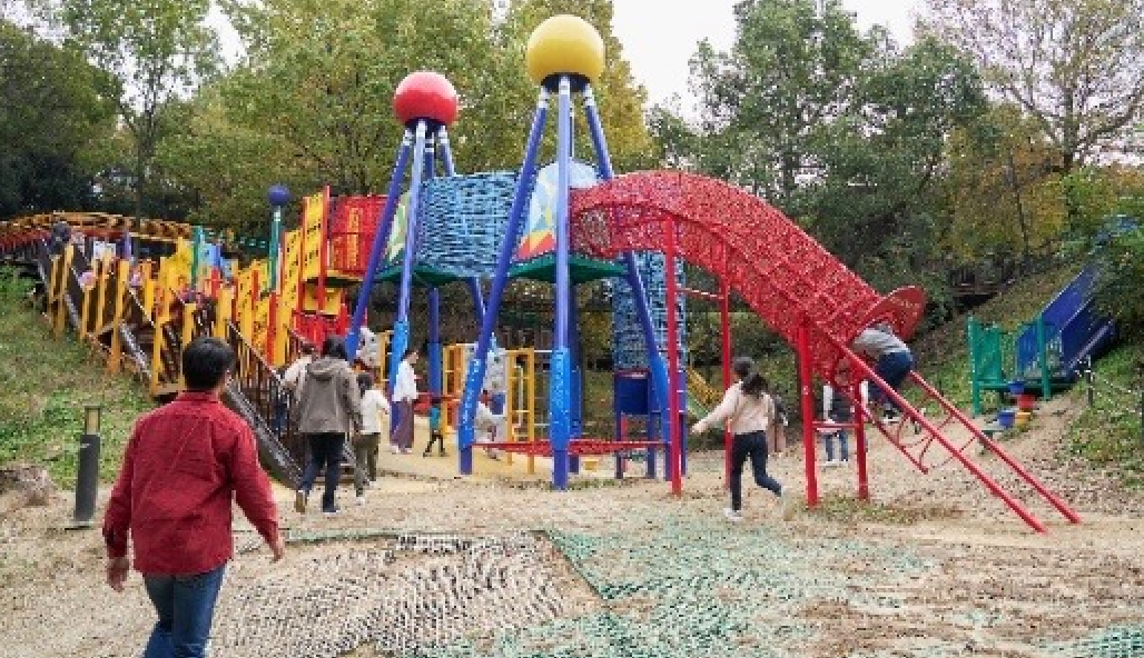 古い遊具が生まれ変わり、谷が冒険のステージに変わる!
