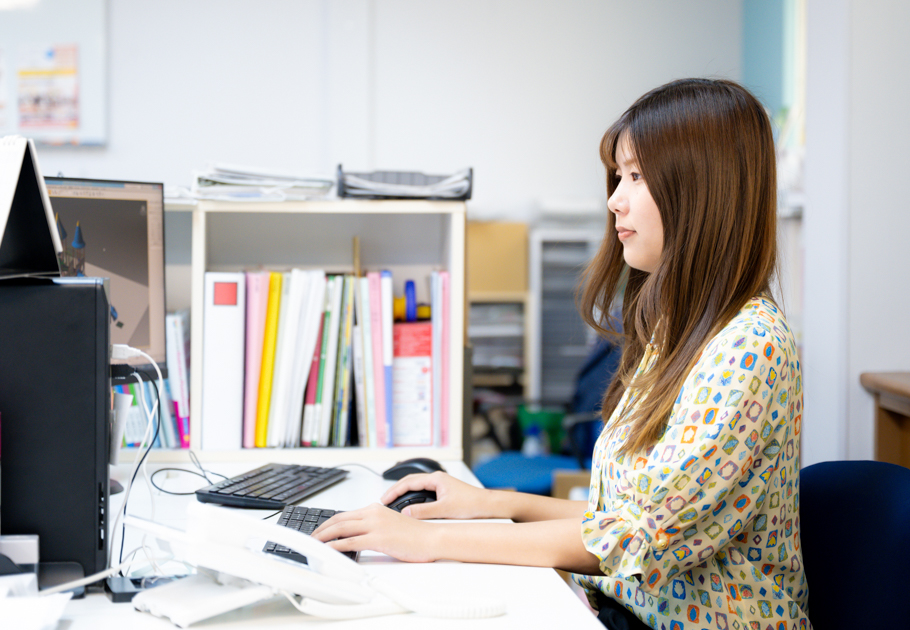前職では英会話教室で子どもと接する仕事をしていたこともあり、「子どもに関わる仕事を続けたい」という思いがありました。また、趣味で編み物をしていたことから、ものづくりの仕事にも興味を持っていました。そんなとき、ホームページから伝わってきた「遊び心」と「楽しさ」に惹かれ、さらに英語力を活かせることも決め手となり、内田工業で働きたいと感じました。現在は、海外メーカーからの遊具や部品の仕入れを中心に、現地訪問による新製品の開拓、品質管理、納品手配、施工現場に同席してのサポートやパンフレットの作成まで、様々な業務に携わっています。