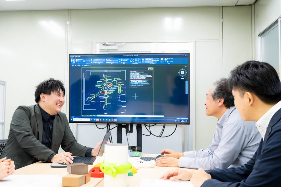 もっとも印象に残っているのは、入社1年目に携わった「モリコロパーク」の遊具プロジェクトです。オープンの日、子どもたちが駆け寄り、笑顔で遊ぶ姿には胸が熱くなりました。また、自分の子どもから「トト(お父さん)がつくった公園に行きたい」と言われたときは、父親としてもデザイナーとしても、この上ない喜びを感じました。プロジェクトを通じて学んだのは「完成のイメージをわかりやすく伝える事の大切さ」です。さまざまな材料を駆使してスピーディにサンプルを制作。図面だけでは伝わらない事をお客様と共有し、より満足していただける製品を設計できるようになりました。
