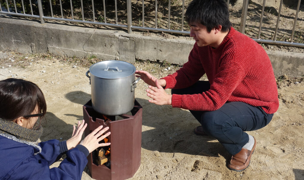 脚部をかまどとして使用できるベンチです。煮炊きをする他、暖を取ってコミュニケーションを促すツールとしても使われています。