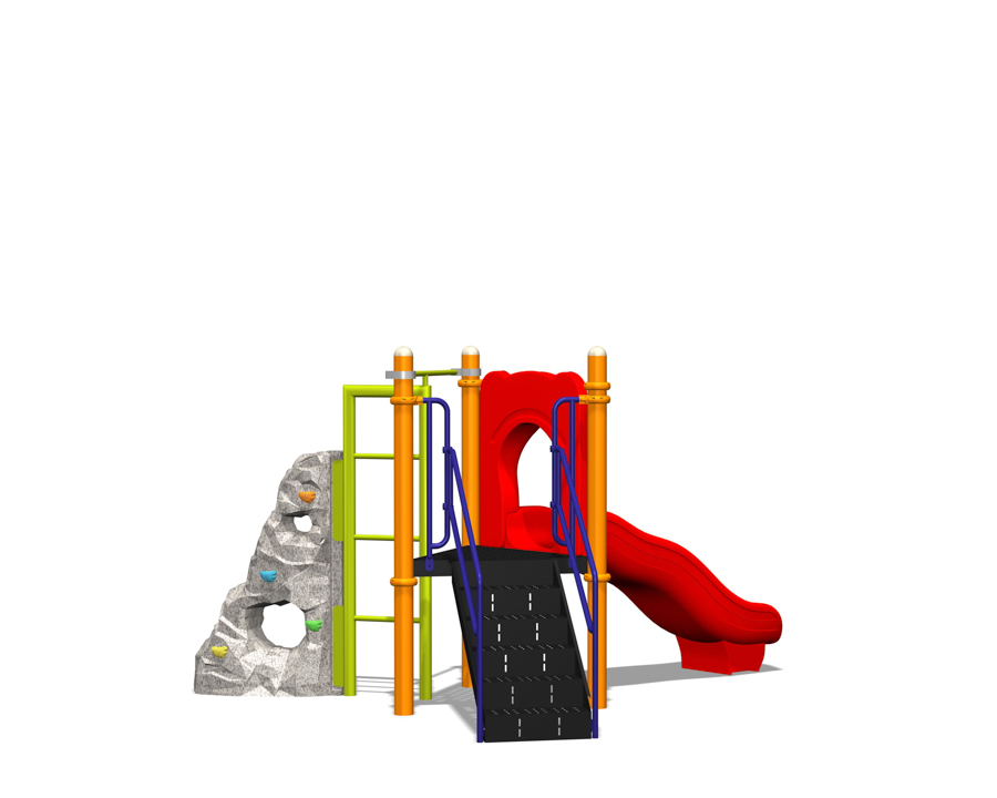 支柱:高強度アルミニウム(粉体塗装仕上) パイプ:ステンレス/高強度アルミニウム(粉体塗装仕上) デッキ:スチール(PVC仕上げ) パネル:ポリエチレン成形品/PE積層パネル 滑降面:ポリエチレン成形品 |